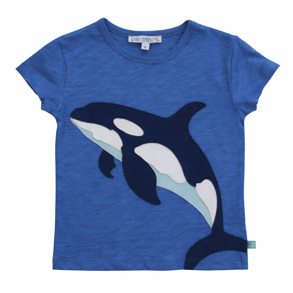 Dieses coole Shirt in blau begeistert durch seine große Orka Applikation auf der gesamten Front. Die hochwertige und detailreiche Applikation lässt den Orka lebendig erscheinen.