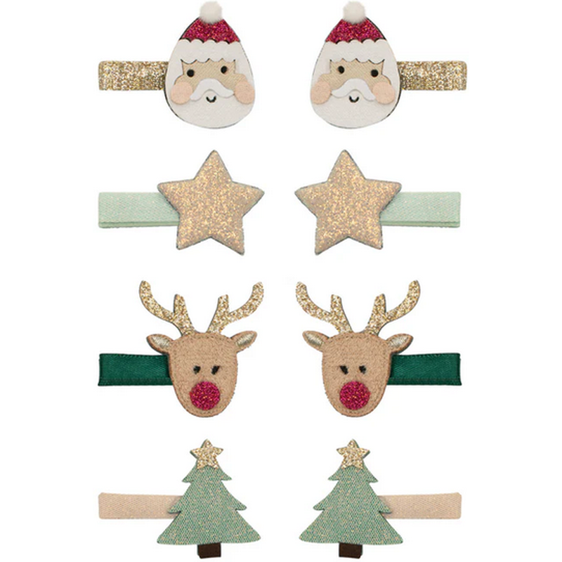 Begrüßen Sie den Weihnachtsmann und seinen süßen Kumpel mit diesem wunderbaren neuen Mini-Clip-Set! Acht winzige Clips in einer herrlich festlichen Palette aus Rot, Grün und Gold – einfach perfekt!