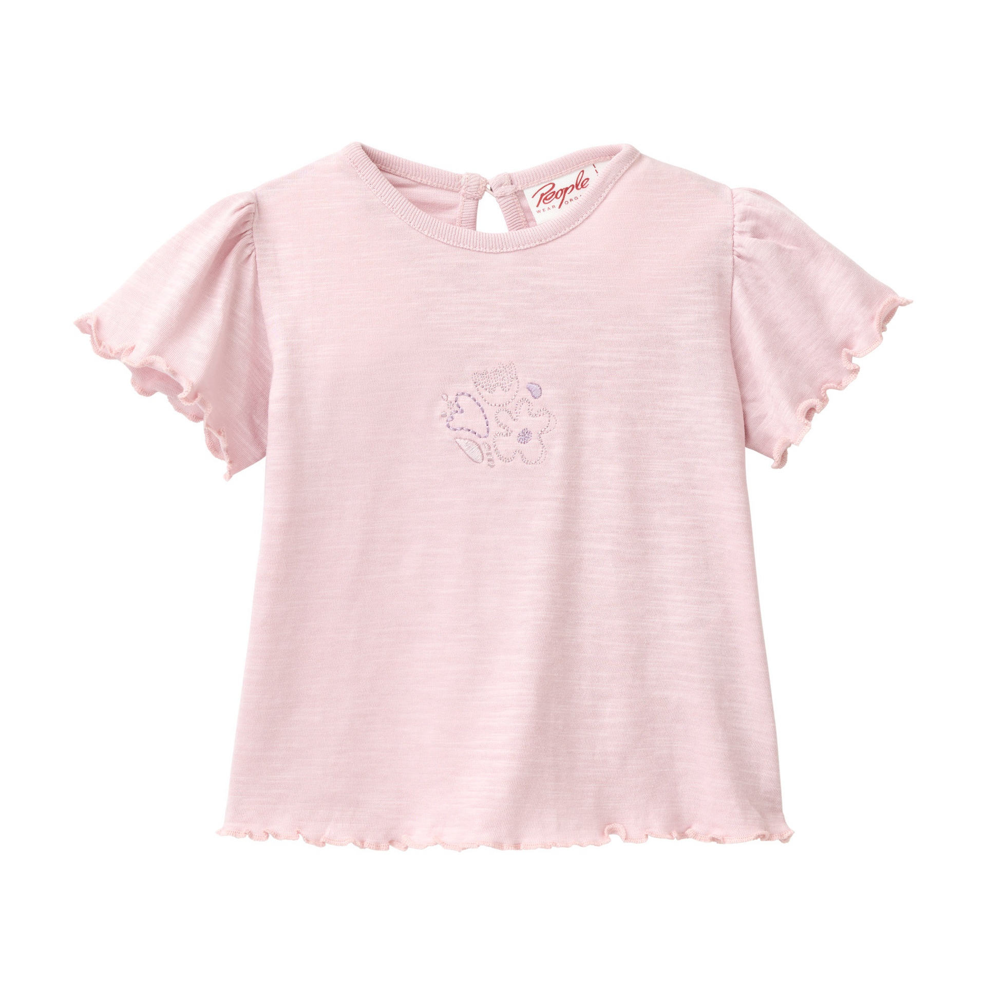 Zart, leicht und wunderbar bequem – dieses T-Shirt von People Wear Organic besteht aus 100 % Biobaumwolle und fühlt sich angenehm weich auf der Haut an. Die feinen Rüschen an Ärmeln und Saum sowie die liebevolle Stickerei verleihen ihm eine verspielte Note. Ein zauberhaftes Lieblingsstück für warme Tage.