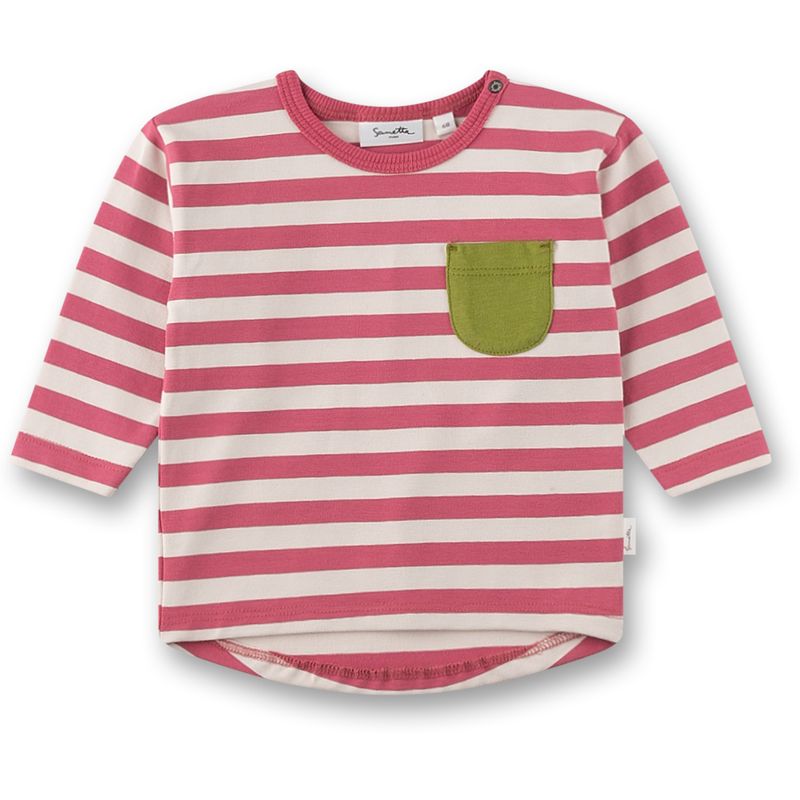 Dieses pink-weiß geringelte Longsleeve für Mädchen von Sanetta Pure