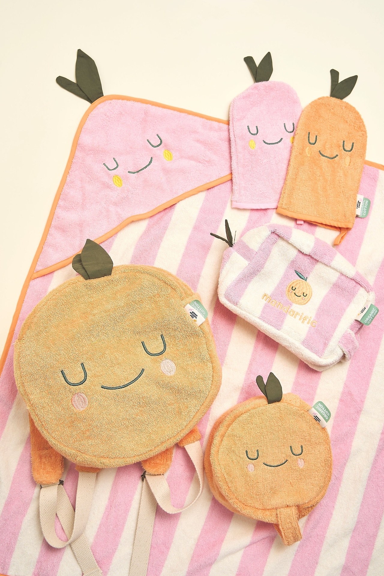 Ein Kapuzenhandtuch, das die Badezeit noch gemütlicher macht. Mandy Mandarine hält Babys und Kleinkinder nach dem Baden warm, trocken und geborgen.