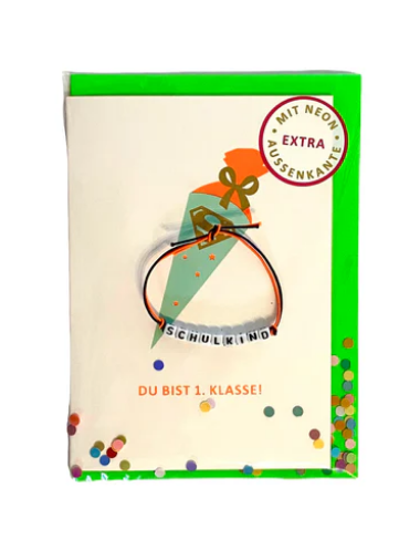 Mit einem Armband für den perfekten Schulstart (Perlen mit Schriftzug SCHULKIND).